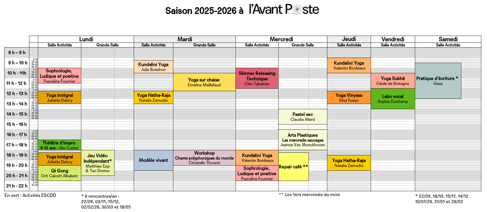 • les activités proposées par l’ESCDD à l’Avant-Poste :